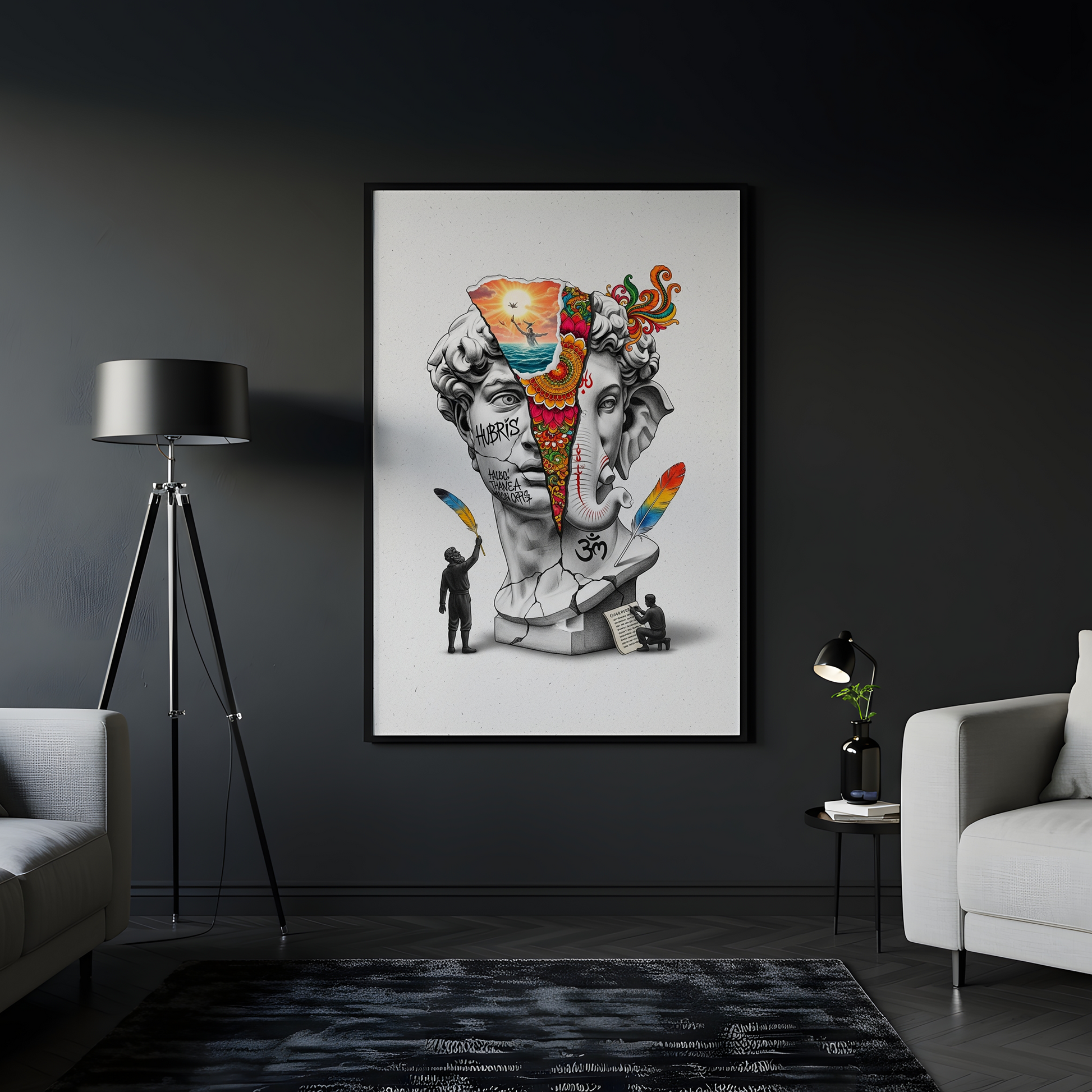Luiff Art'ın bu çarpıcı ve kültürel açıdan zengin tasarımı, Batı'nın "Hubris" (Kibir) ile dolu klasik idealini (David büstü) ve Doğu'nun "Engelleri Kaldıran" bilgesini (Ganesha) bir araya getiriyor.