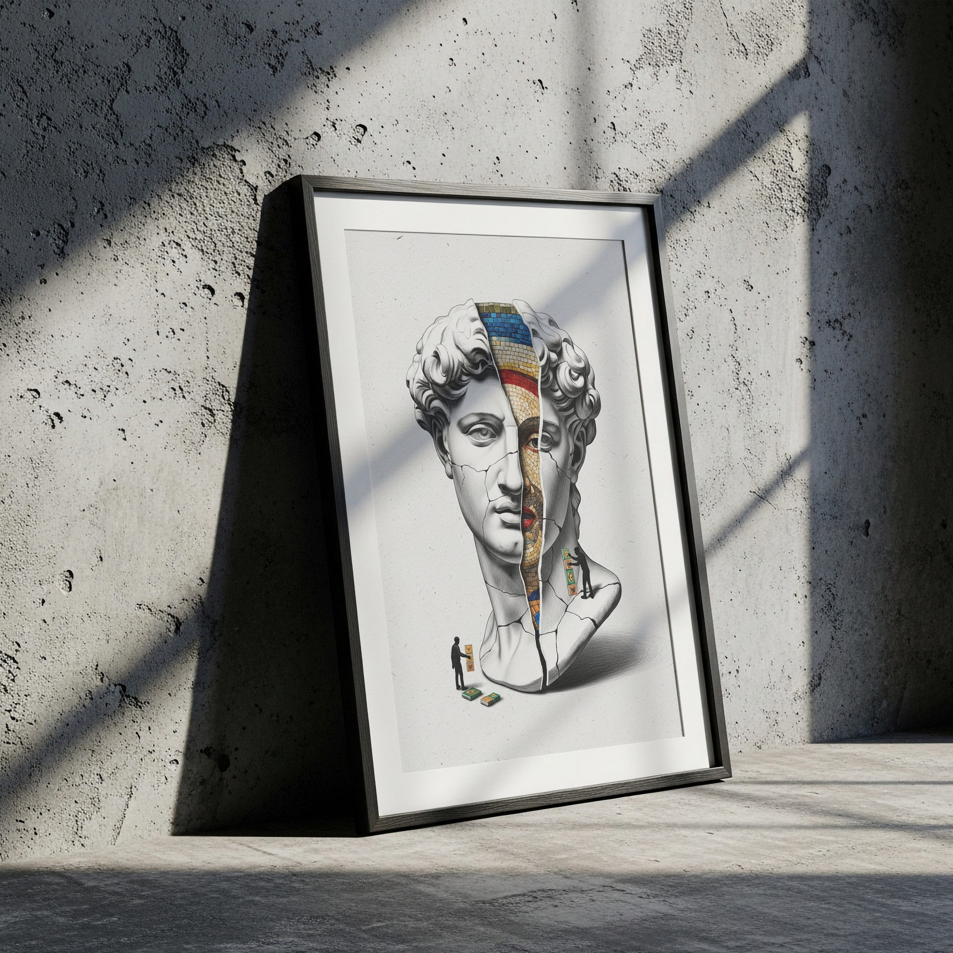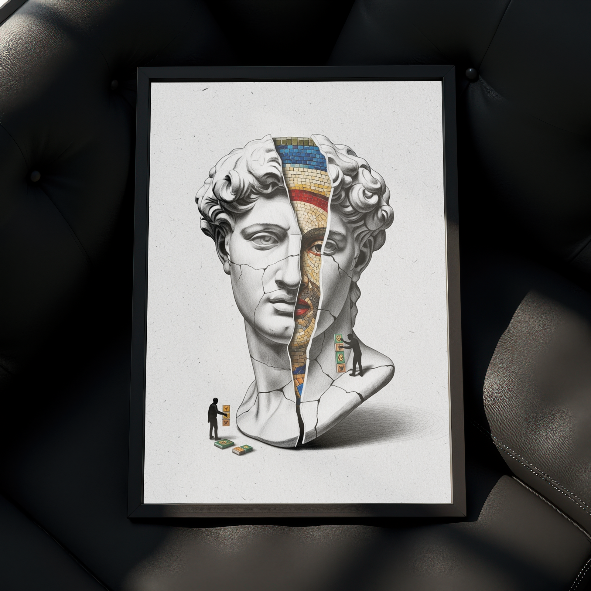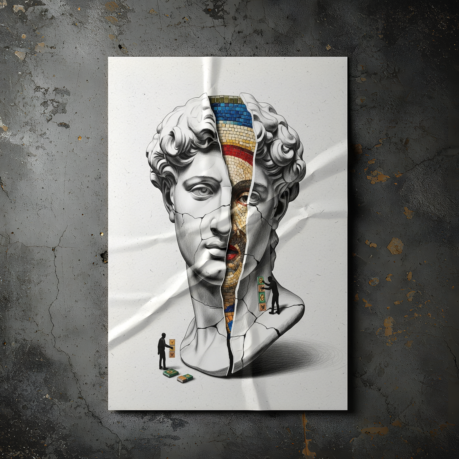 Luiff Art'ın bu entelektüel tasarımı, "Tarihin Katmanları"nı sorguluyor. Rönesans'ın başyapıtı David büstü, altındaki daha eski bir sanat formu olan "Bizans Mozaiği"ni ortaya çıkarmak için bir arkeolog gibi kazılıyor.