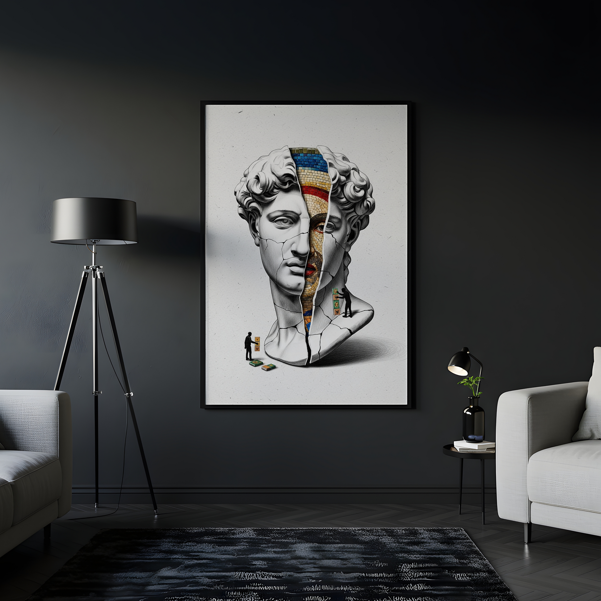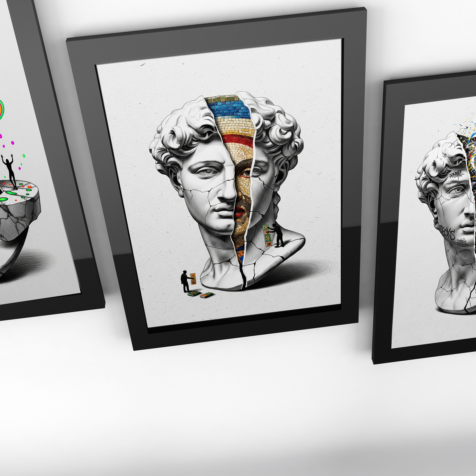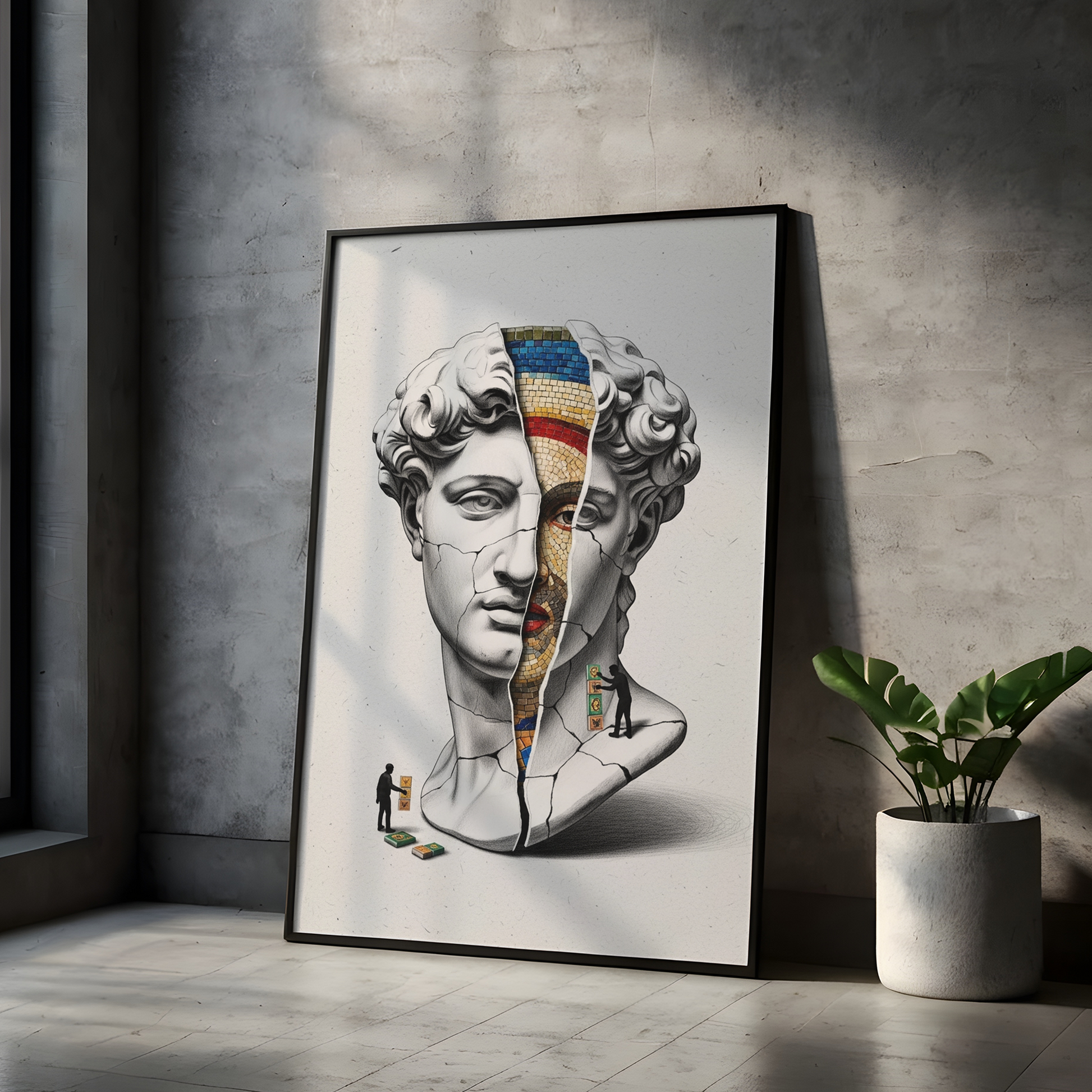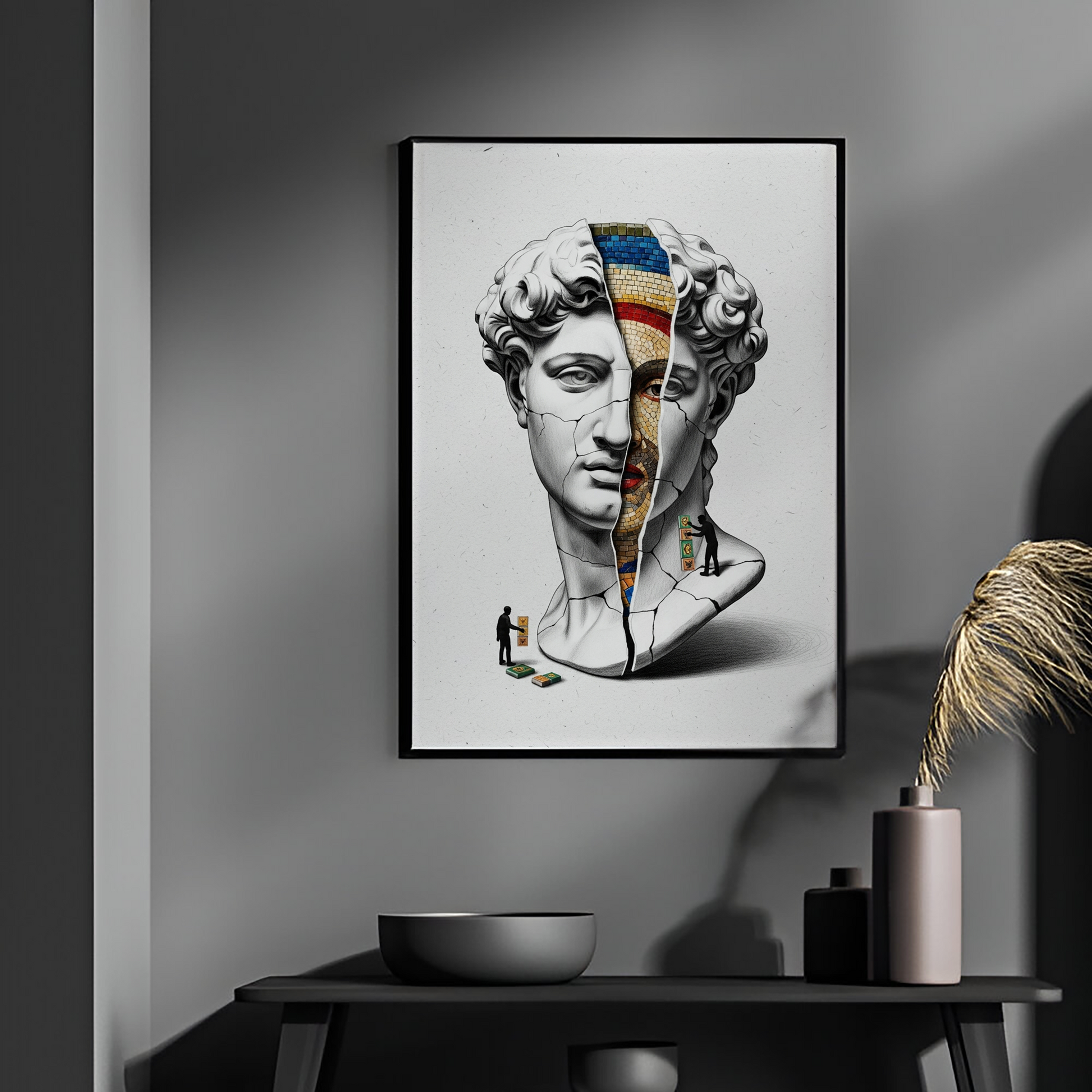 Luiff Art'ın bu entelektüel tasarımı, "Tarihin Katmanları"nı sorguluyor. Rönesans'ın başyapıtı David büstü, altındaki daha eski bir sanat formu olan "Bizans Mozaiği"ni ortaya çıkarmak için bir arkeolog gibi kazılıyor.