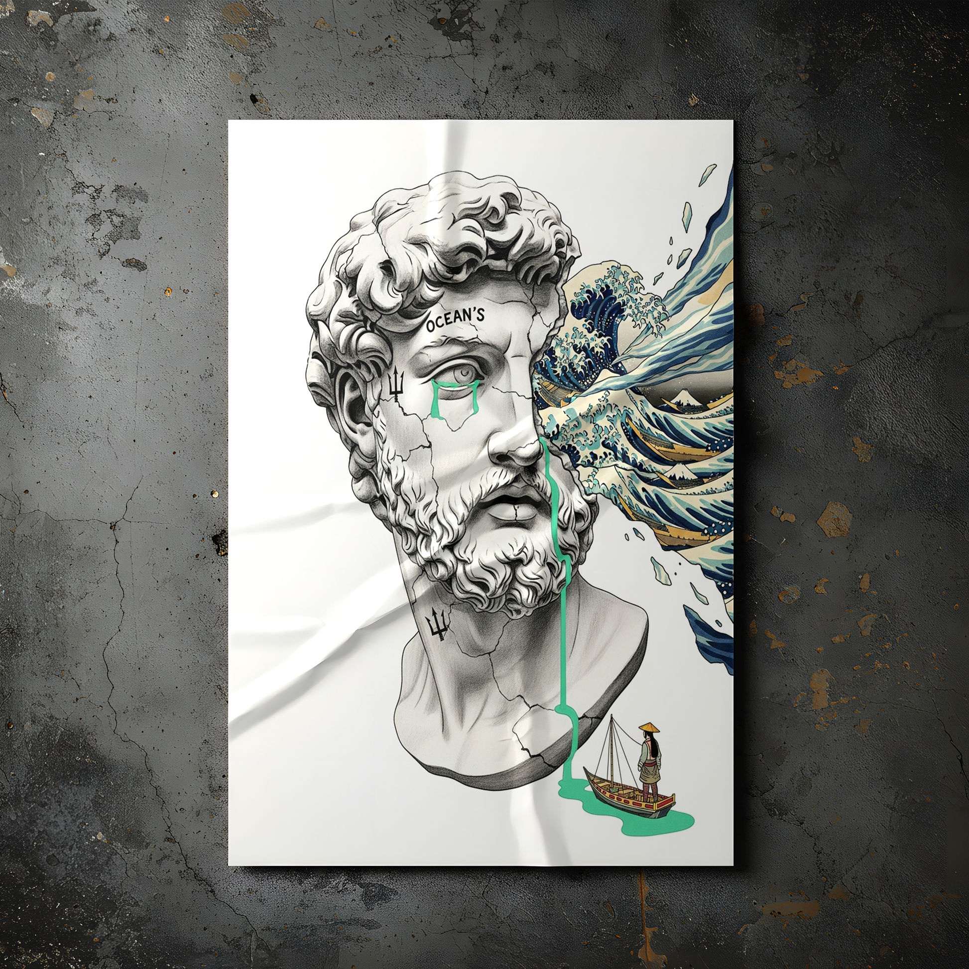 Bu orijinal "Altered Art" (Değiştirilmiş Sanat) kolajı, klasik formun içinde saklı olan okyanusun ham, kontrol edilemez gücünü kutluyor. Büstün zihninden fışkıran "Büyük Dalga", doğanın sanat üzerindeki ebedi etkisini simgeler.