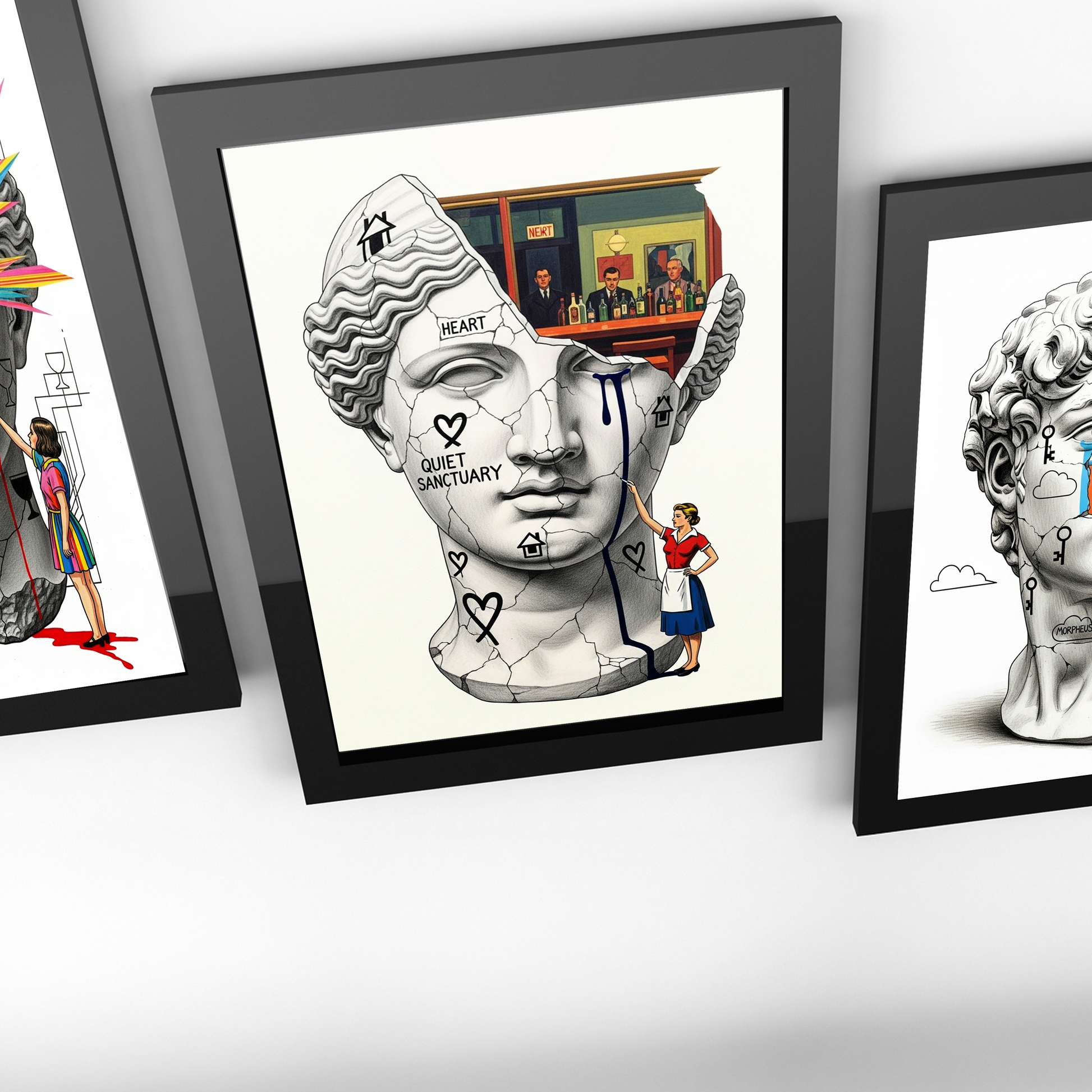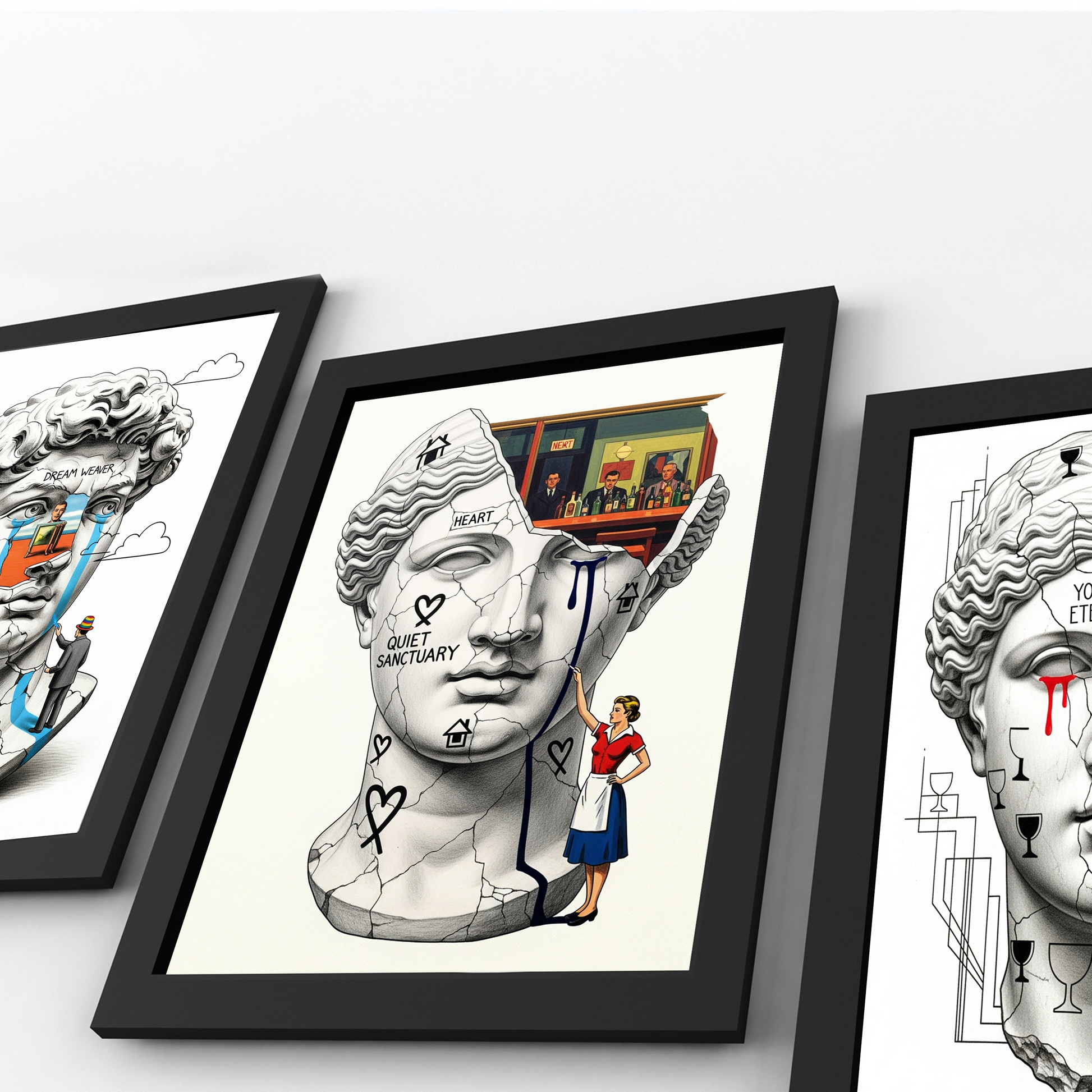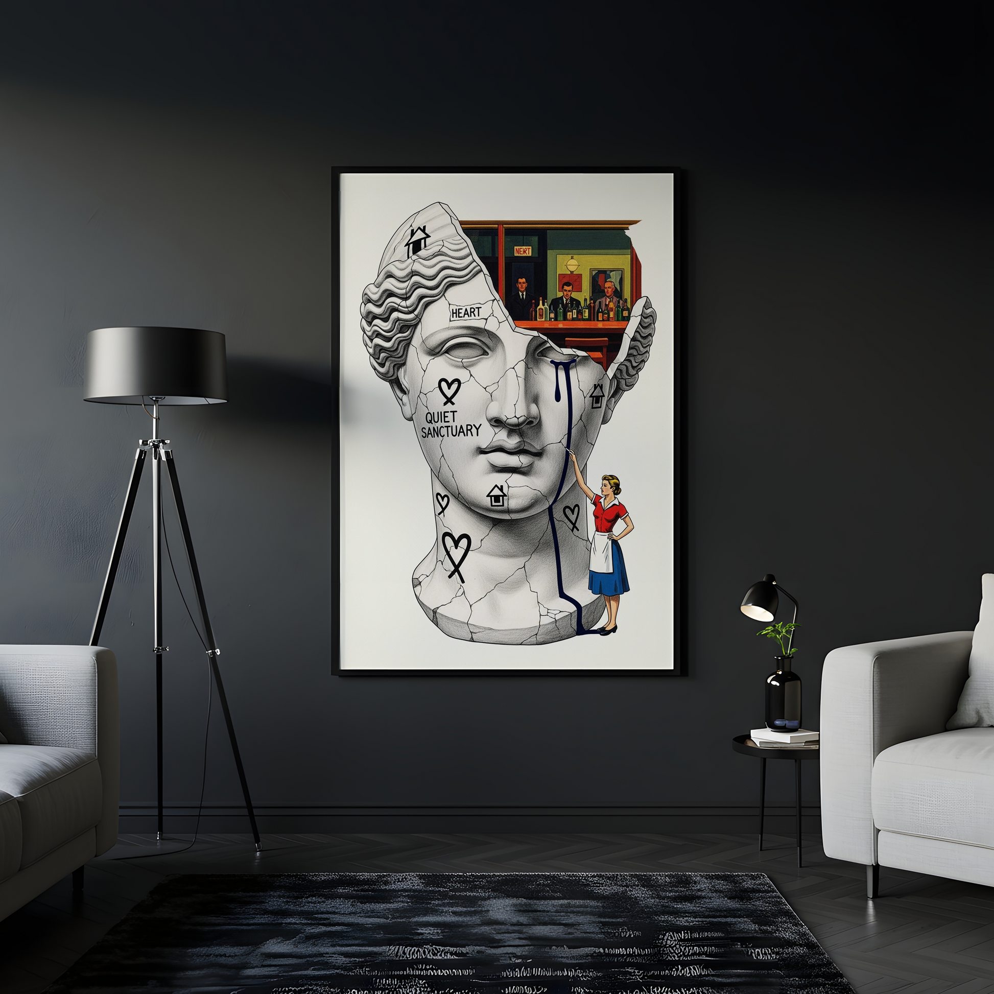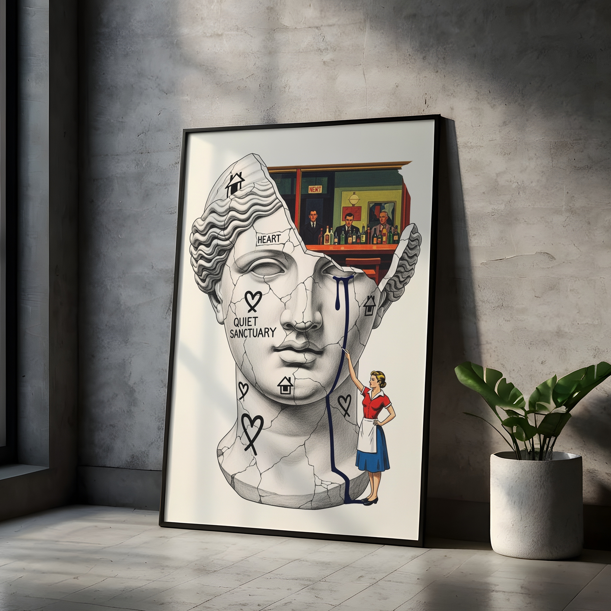 Luiff Art'ın bu entelektüel tasarımı, "Quiet Sanctuary" (Sessiz Sığınak) temasıyla, klasik Venüs büstünü, Amerikan modernizminin başyapıtı "Nighthawks" (Gece Kuşları) ile birleştiriyor.