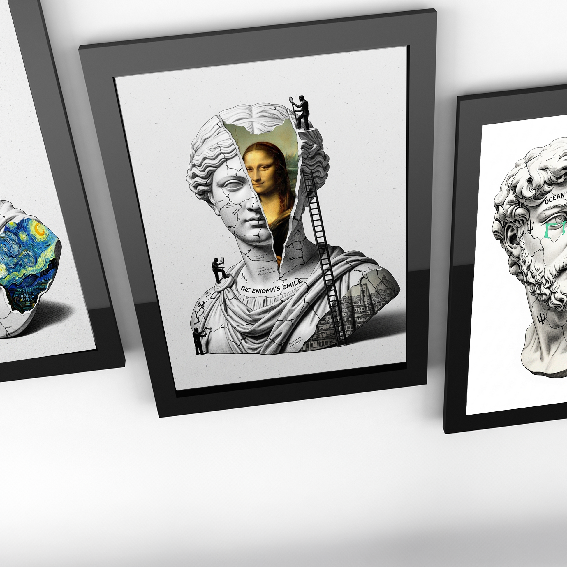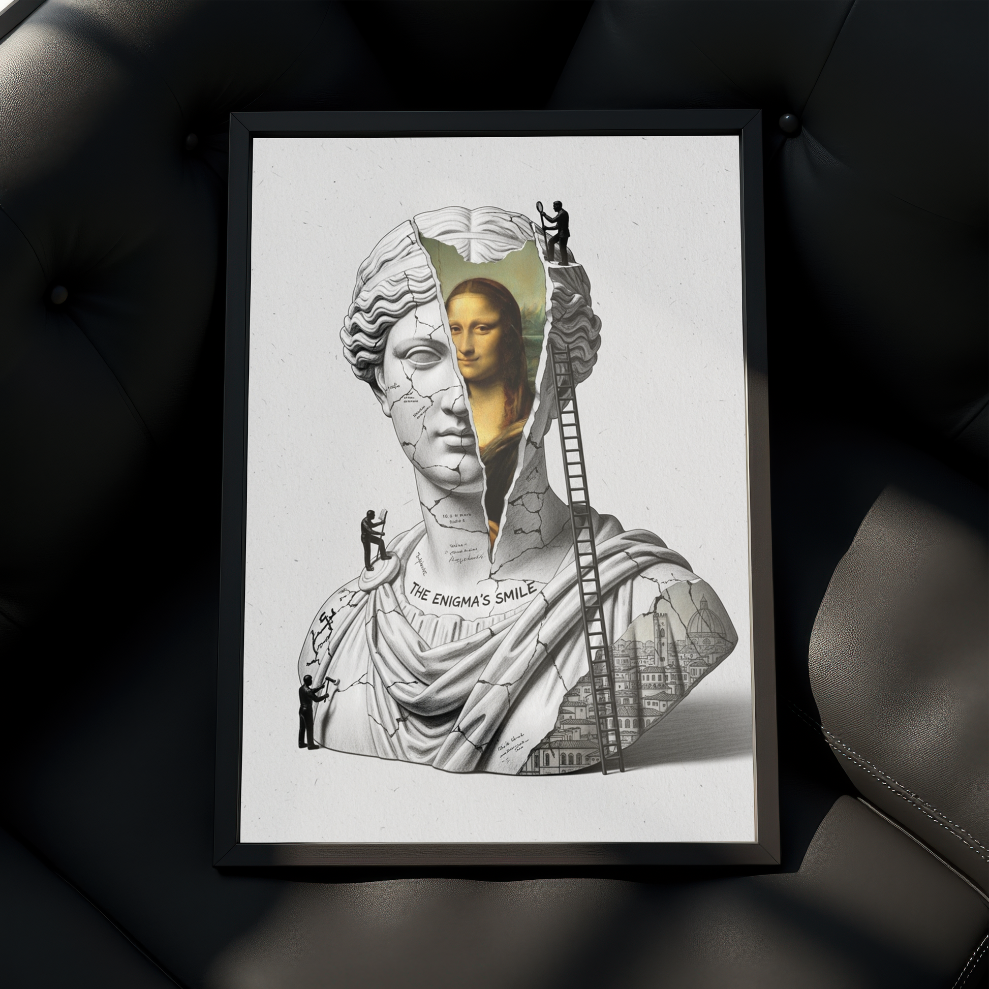 Bu orijinal "Altered Art" (Değiştirilmiş Sanat) kolajı, Venüs büstünün zihnini, Da Vinci'nin "Mona Lisa" portresiyle doldurur. Büstün gövdesinden ortaya çıkan Rönesans şehir manzarası ve eseri "inceleyen" küçük figürler, bu gizemin kökenlerine inen sanatsal bir yolculuk sunar.